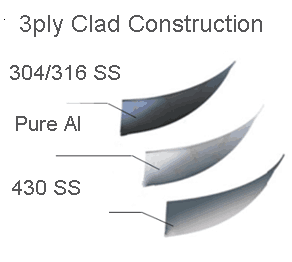 all clad 3ply /5ply Stainless steel (Interior 304 /316 stainless steel, 430